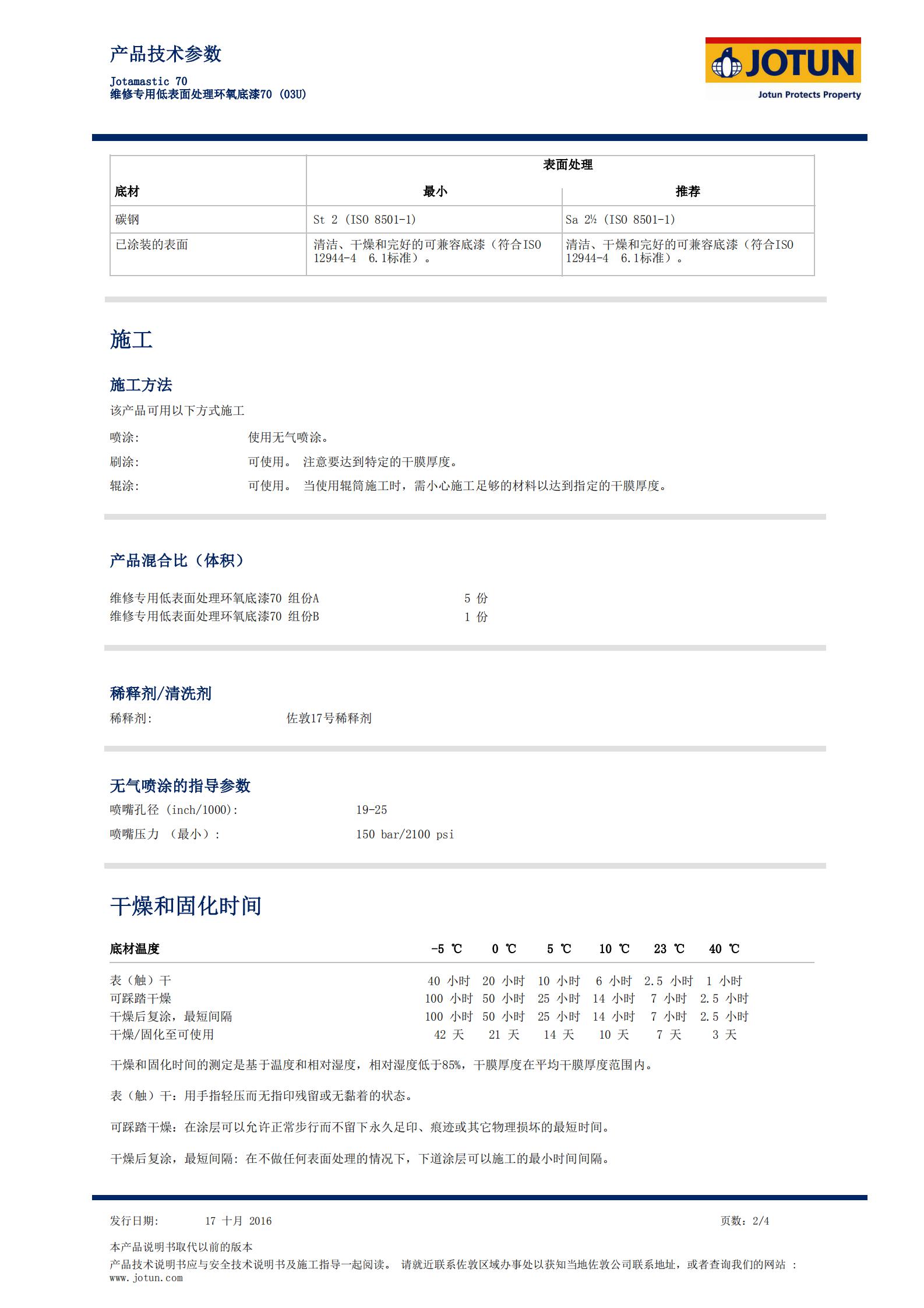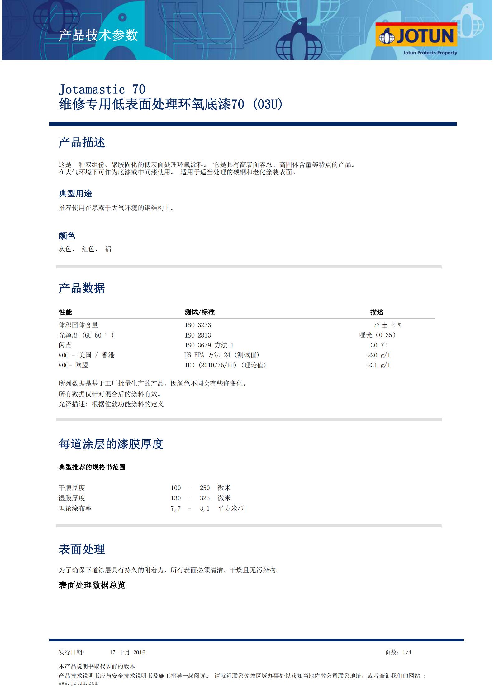 TDS-Jotamastic+70_CN-维修专用低表面处理环氧底漆 70