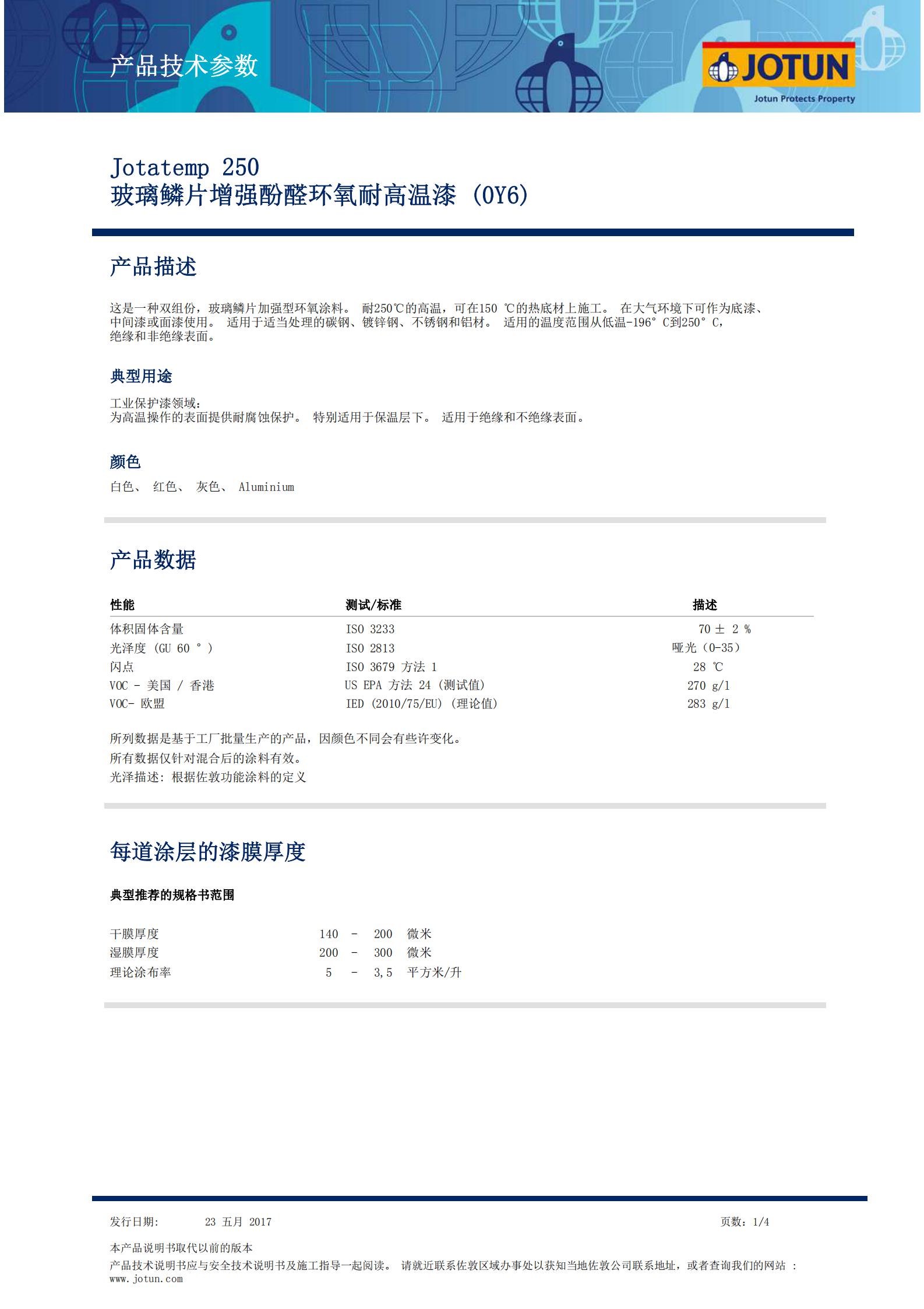 TDS-Jotatemp 250 玻璃鳞片增强酚醛环氧耐高温漆 (0Y6)