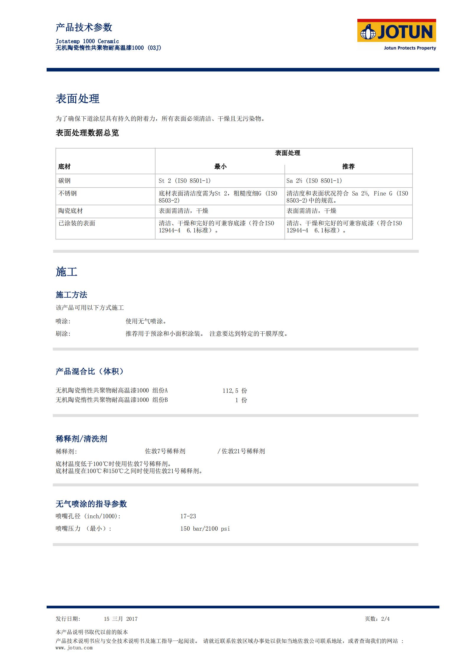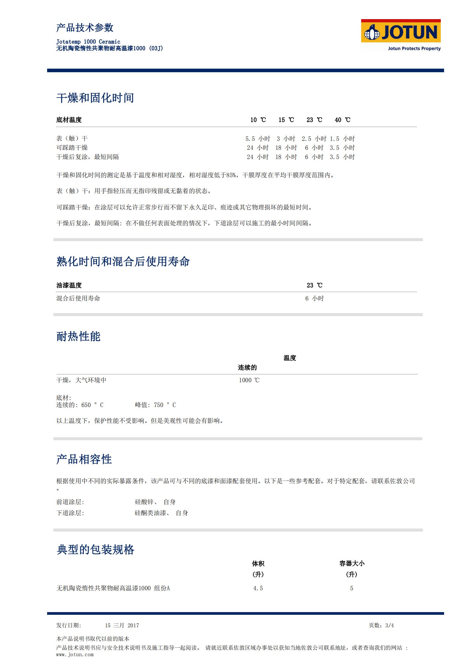 TDS-Jotatemp 1000 Ceramic 无机陶瓷惰性共聚物耐高温漆1000 (03J)